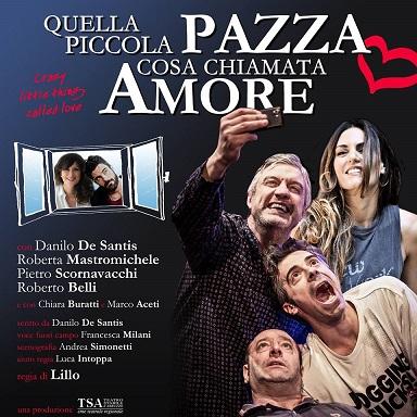 Debutta martedì 13 marzo al teatro Golden la commedia “Quella piccola pazza cosa chiamata amore” scritta da Danilo De Santis e diretta da Lillo ( di Lillo & Greg). Prodotta dal Teatro Stabile d'Abruzzo la cui direzione artistica è di Alessandro D'Alatri, la commedia sarà in scena fino a domenica 8 aprile. Sul palco sei attori: Danilo De Santis, Piero Scornavacchi, Roberto belli, Roberta Mastromichele, Chiara Buratti, Marco Aceti ad interpretare altrettanti protagonisti, Ferdinando, Luigi, Mario, Ilaria, Vittorio, Elena tutti afflitti dallo stesso problema, tutti in preda alla stessa ossessione: l'amore. Come qualsiasi altra ossessione, o forse di più, l'amore fa muovere gli esseri umani in modi irrazionali, fa assumere spessocomportamenti ridicoli e surreali. Ed è proprio ciò che accade in questa divertentissima, ma sentimentale commedia. Scritta in modo lieve, ma mai scontato da Danilo De Santis, un modo divertente di raccontare l'amore, mai volgare, ma sempre sopra le righe. In “Quella piccola pazza cosa chiamata amore” ognuno è innamorato di un altro o di un'altra e nessuno riesce a cancellare dalla propria mente il ricordo e l'attaccamento  verso l'oggetto del desiderio anche dopo tantissimi anni. Ed è  a causa di quest' ossessione che tutti sono disposti a sottostare ai più incredibili sotterfugi, ad inventare strategie spesso ridicole, a volte  anche imbarazzanti pur di tentare di conquistare o riconquistare la persona amata. Ed è così che Luigi diventa Lulù per entrare e restare nelle grazie di Ferdinando, omosessuale, da 27 anni innamorato ed in attesa che il suo amore torni da lui. Ferdinando ospita quindi Luigi/Lulù, che vuole vivere a casa di Ferdinando per tentare di riconquistare il cuore di Elena che vive nella casa di fronte. Ferdinando lentamente inizia ad avere un debole  per  Luigi/Lulù, che per scappare dalle attenzioni del padrone di casa si dichiara innammorato di Mario che però è innammorato follemente di Ilaria che non riesce a dimenticare Vittorio. Due case, una di fronte all’altra, la finestra diventa il punto di vista di quella piccola pazza cosa chiamata Amore.