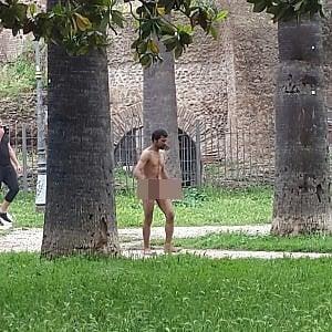 Roma, degrado Esquilino: uomo nudo in piazza Vittorio