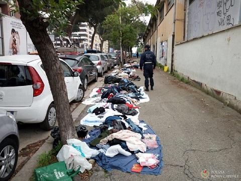 Diverse aree della città sono state battute a tappeto, nel corso della settimana, dalla Polizia Locale di Roma Capitale,  Pics ( Pronto intervento centro storico), ai fini del ripristino del decoro urbano. Nella zona di Fontana di Trevi sono stati effettuati numerosi sequestri di articoli contraffatti e merci varie (abbigliamento, ombrelli…) vendute abusivamente. Le violazioni riscontrate sono state anche di carattere penale, per la vendita di borse con marchi contraffatti. Durante i controlli in via delle Muratte, diversi venditori abusivi sono stati fermati per identificazione. Le operazioni si sono estese anche in aree al di fuori del Centro Storico, in particolare nella zona Montagnola. In via Francesco Acri  gli agenti hanno effettuato assidui controlli che hanno portato al sequestro e alla rimozione di oltre 5 metri cubi di articoli di abbigliamento, libri, cosmetici, oggetti e ciarpame vario, proveniente in parte dall'attività di rovistaggio nei cassonetti dei rifiuti. Altri 3 metri cubi di ciarpame sono stati rinvenuti e rimossi in via Pico della Mirandola. Sequestri hanno riguardato  anche l'area di Porta Maggiore, con 2 metri cubi di masserizie rimosse, tra cui pc, supporti informatici, elettrodomestici, abbigliamento e scarpe. Con l’ausilio di personale AMA, tutta la merce è stata conferita in discarica per la successiva distruzione. Controlli anche nelle aree intorno alle Mura Aureliane. Più precisamente, nella zona di via Carlo Felice sono stati rimossi due metri cubi di ciarpame. Nel tratto di via Casilina, da Piazzale Labicano allo svincolo per la Tangenziale Est, gli agenti sono intervenuti, dopo lo sgombero effettuato la settimana scorsa,  per una nuova bonifica dell'area, con il supporto tecnico di operatori e mezzi Ama. Rimosso l'insediamento costituito da alcune baracche improvvisate, costruite con materiale vario. I giacigli e rifiuti accumulati vicino all'insediamento sono stati conferiti in discarica. Continua la lotta contro l'abusivismo commerciale e le forme di degrado urbano. Gli interventi verranno ripetuti in altri quadranti e reiterati laddove si registri  la recrudescenza dei fenomeni.