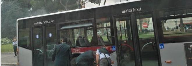 Roma, bus a fuoco a piazza Venezia: paura in centro, traffico in tilt