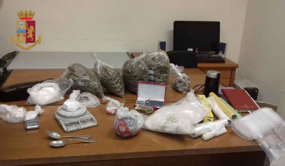 Ed è proprio all’interno del locale che sono stati trovati oltre 2 kg di marijuana, hashish e cocaina pari circa a 200 grammi .Dell’uomo, tuttavia, forse messo in allarme da una telefonata fatta dalla madre mentre gli agenti stavano facendo la perquisizione dell’abitazione, nessuna traccia.