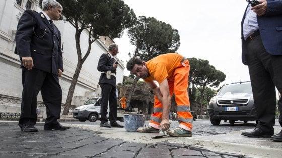 Per ora, quindi, il Comune non si sbilancia: non multerà i romani armati di bomboletta, ma non può nemmeno incoraggiarli. Da qui il silenzio di Raggi. Capitolo sampietrini: ieri, cinguettando, la prima cittadina ha rispolverato il dossier sui caratteristici selci capitolini.