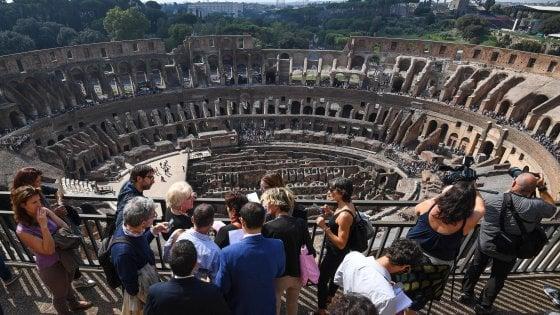 Riaprono al pubblico, dopo più di 40 anni, il IV e il V livello del Colosseo. Posizionati a circa 40 metri d'altezza rispetto al piano dell'arena, erano destinati alla plebe e non consentivano una veduta dettagliata di quanto accadeva nell'arena, ma in compenso erano coperti dalla tettoia che riparava dal sole e dalla pioggia. "È una giornata importante, riapriamo i piani alti dell'Anfiteatro Flavio in seguito a un restauro importante", ha detto il ministro dei Beni e delle Attività culturali e del Turismo, Dario Franceschini, nel corso della visita organizzata per la stampa. "Da qui – ha aggiunto il ministro parlando dalla terrazza del V livello – si può apprezzare una vista incredibile sul Colosseo e su Roma. Insomma, il percorso di valorizzazione del monumento va avanti e proseguirà con il progetto di ricostruzione dell'Arena, che è stato già finanziato, che sta procedendo e che renderà ancora più spettacolare la visita di questo monumento, simbolo dell'Italia nel mondo". Fino ad oggi era possibile visitare l'anfiteatro Flavio soltanto fino al III livello.